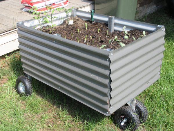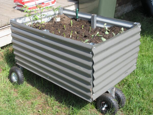 Made from steel and Colorbond, our Mobile Garden Beds are designed to hold the weight of soil and plants while still being mobile. We have chosen strong, durable casters that roll across the lawn, rather than digging it up. Each garden bed measures 80cm x 50cm and holds a quarter of a cubic meter of soil in a durable steel frame.