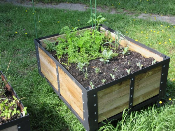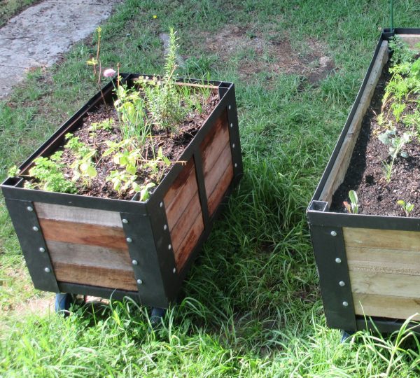 Made from steel and recycled timber, our Mobile Garden Beds are designed to hold the weight of soil and plants while still being mobile. We have chosen strong, durable casters that roll across the lawn, rather than digging it up. Each garden bed measures 80cm x 50cm and holds a quarter of a cubic meter of soil in a durable steel frame.